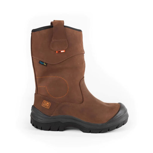 A hard wearing waterproof safety hi-leg boot with water resistant full grain leather, composite toe cap, non-metallic penetration resistance midsol...