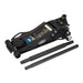 This trolley jack features an extra-fast single lifting pump to ensure it reaches full height in just 2.5 strokes. It has a low profile design making it ideal for vehicles with a reduced clearance height, enabling a lifting range from 78-510mm. There is an integrated rubber saddle pad to prevent damage to the underside of the vehicle when in operation. Fitted with hardwearing nylon wheels with rear swiveling castors, for quiet and smooth operation. These wheels also prevent damage to garage floors. There is a safety valve to prevent the jack from overloading.