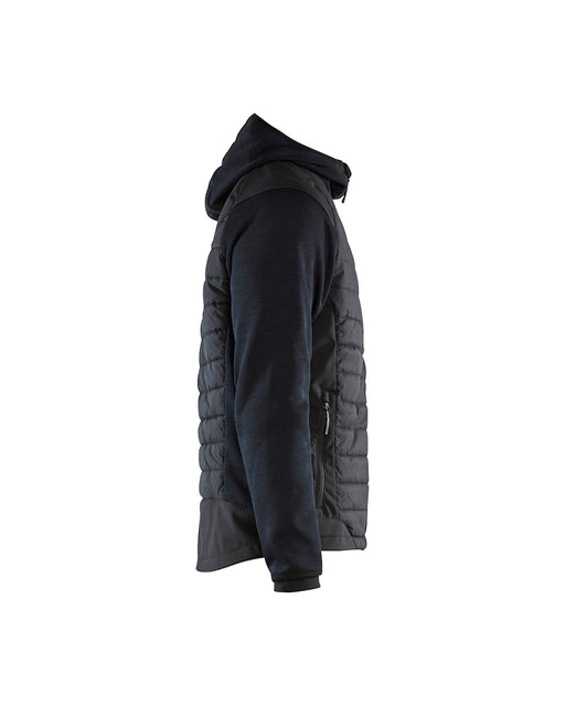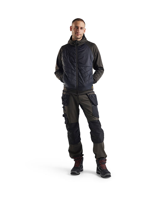 A hybrid jacket featuring a thin but warm padding on the front, back and hood, and soft shell fabric over the shoulders, arms and sides. A comforta...