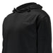 Black marl performance hooded sweatshirt with front pocket and 3 panel fitted hood. Lightweight 100% polyester fabric. Chest and sleeve print with a bound cuff. Twin needle hem & cuff.