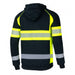 This high-quality jumper is designed to ensure maximum comfort and durability. It is made of 100% cotton jersey (320 g/m²), which provides a soft and comfortable feeling. The design of the jumper is unique due to the contrasting fluorescent material made of 100% polyester (320 g/m²), which provides high visibility and a modern design. The sweater has a non-removable adjustable hood, a high collar and is fastened with a high-quality YKK zipper. Additional zipper protection at the chin. The jumper has two capacious pockets on the front, waist area. The right pocket has a double pocket with a zipper. There are segmented 50mm reflectors on the sleeves, chest and waist.