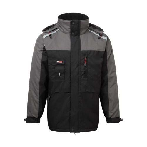 Hardwearing polyester oxford fabric Two detailed chest pockets with flap fastening Handwarmer pockets Sturdy zip and press stud stormflap Reflecti...