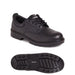 Black action leather water resistant safety shoe. Padded collar and tongue for added comfort. Steel toe cap and steel midsole protection. Dual density polyurethane outsole. Anti-static. A traditional lightweight safety shoe for most industries